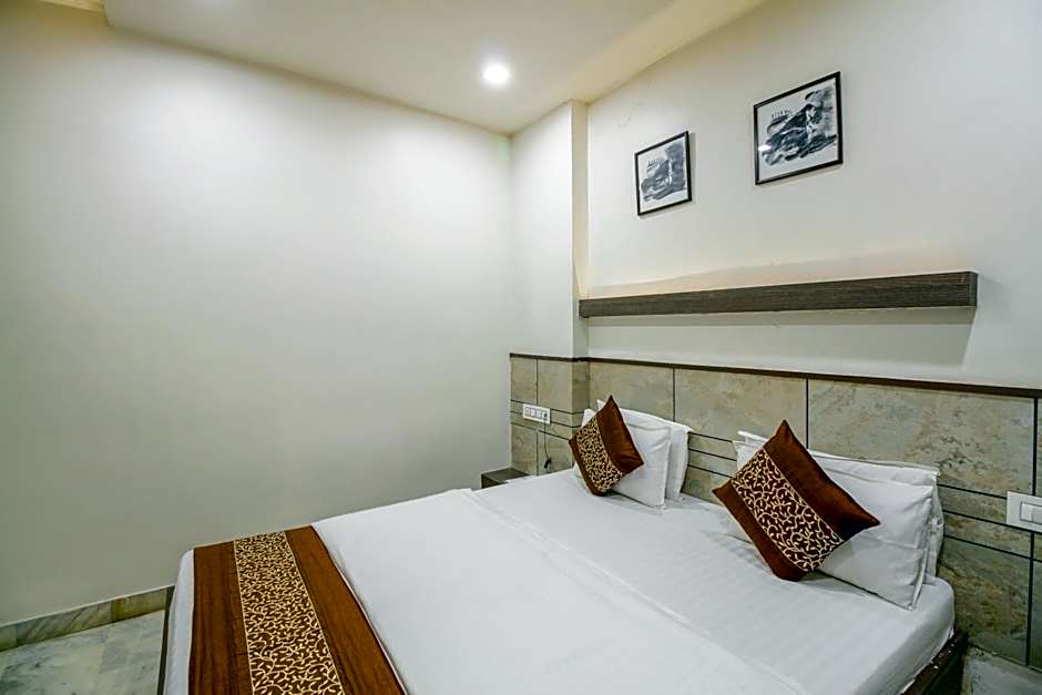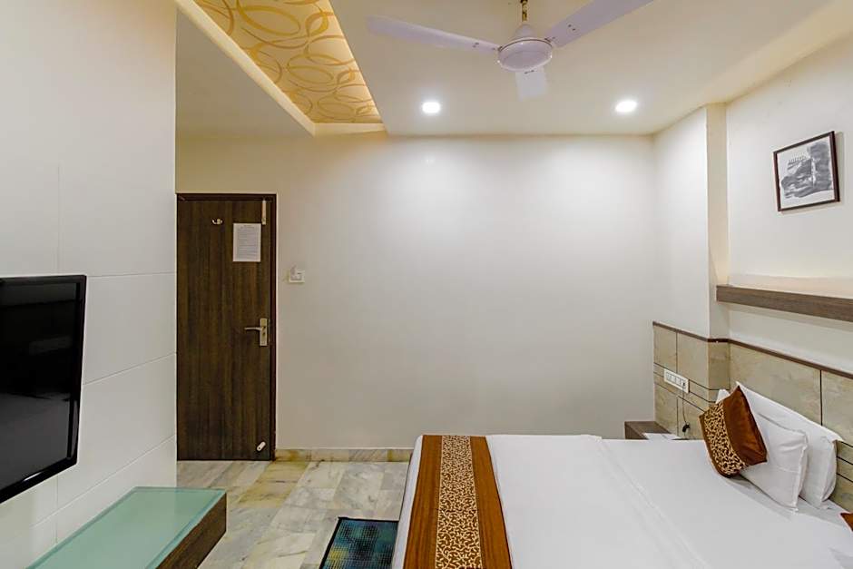 A TV, air conditioning ,safe and private bathroom feature in this room.